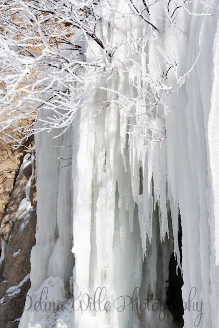 I am lucky to live in Wyoming and right next to the Wind River Canyon were there is such diverse photo opportunities! We have had some warmer weather and that has started the snow to melt, then it freezes in these amazing frozen waterfalls! Today I saw this push seeming to grow out of the frozen waterfall and I just had to snap a few. I hope you enjoy!